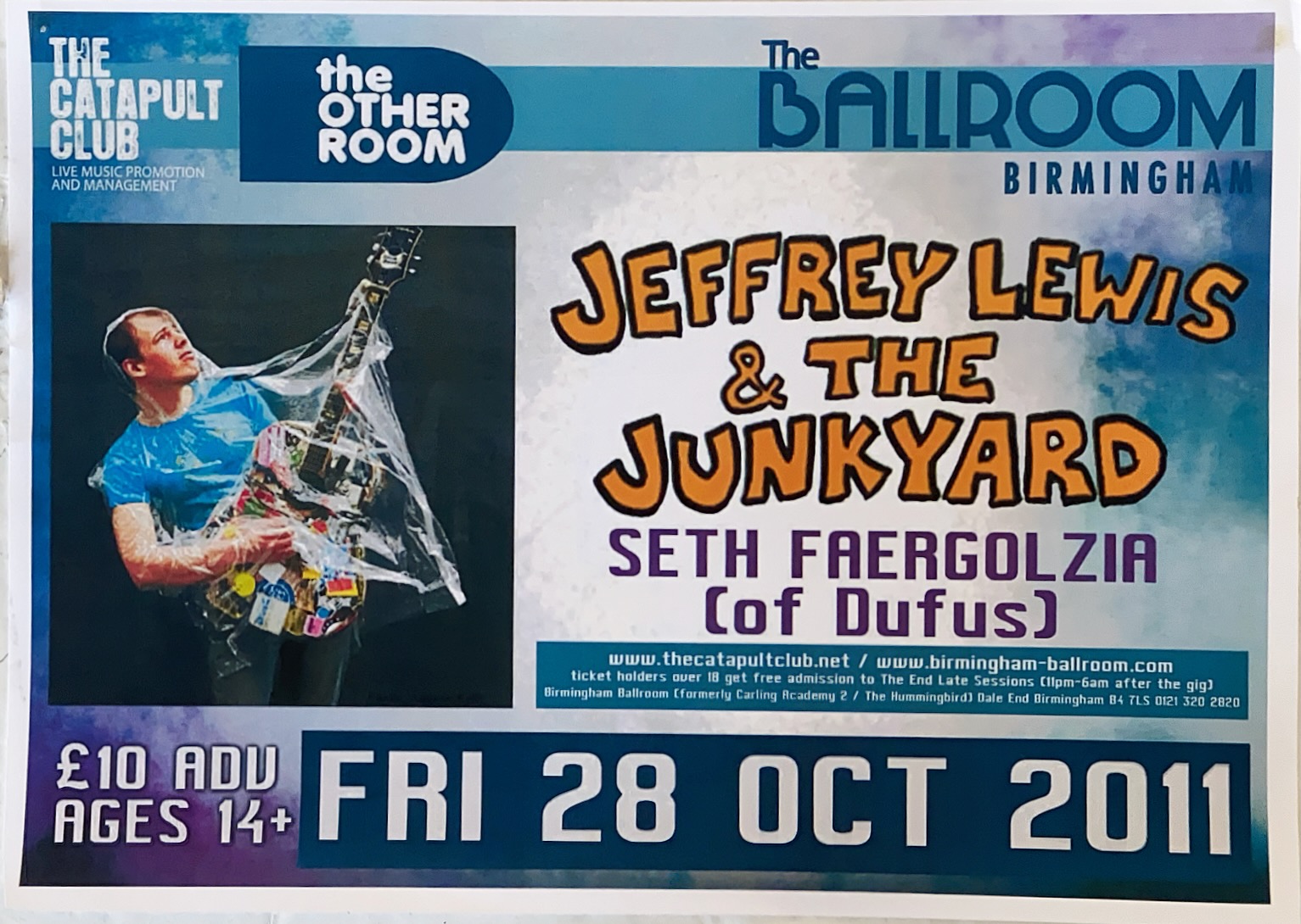 Flyer Jeffrey Lewis and the Junkyard The Ballroom Academy 2 Birmingham Back to results Marc14 April 2026Arthur Tapp - Catapult Club flyer_28-10-2001_jeffreylewisandthejunkyard_the-ballroom_academy2_birmingham_arthurtapp Download TitleFlyer Jeffrey Lewis and the Junkyard The Ballroom Academy 2 BirminghamDescriptionFlyer presented by Catapult Club for Jeffrey Lewis and the Junkyard at Academy 2 in Birmingham on 28th October 2011. With Seth Faergolzia of Dufus in support.Band/Performer/EventJeffrey Lewis and the Junkyard | Seth Faergolzia of DufusDate28 October 2011VenueAcademy 2 BirminghamGenreRockSourceArthur Tapp - Catapult Club Share this item Previous itemFlyer Rise Every Friday with Third Floor Calm Bar Academy Birmingham Jan 2005 Next itemFlyer The Slingbacks The Guaranteed Ugly Jug of Ale Birmingham