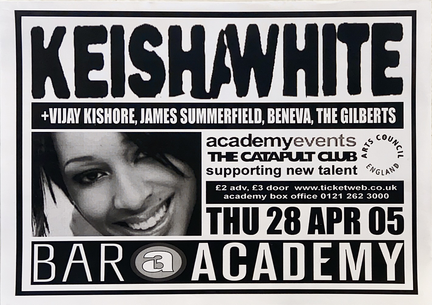 Flyer Keisha White Vijay Kishore James Summerfield Beneva The Gilberts Bar Academy Birmingham Apr 2005