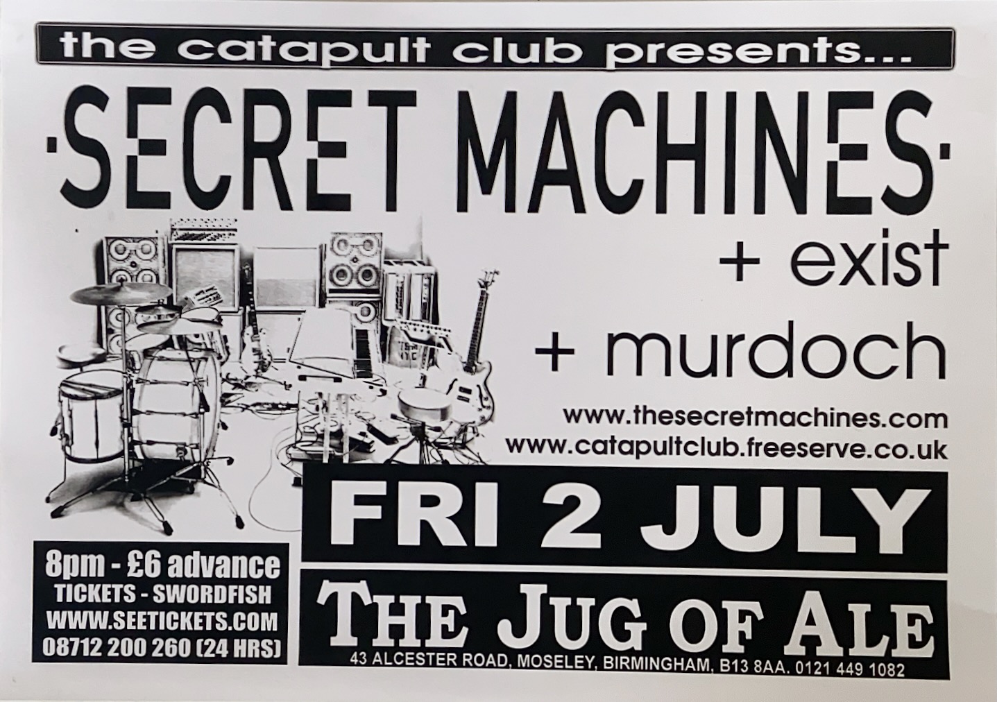 Flyer Secret Machines – Exist – Murdoch Jug of Ale Birmingham Back to results Marc13 April 2026Arthur Tapp - Catapult Club flyer_02-07_secretmachines_jugofale_birmingham_arthurtapp Download TitleFlyer Secret Machines - Exist - Murdoch Jug of Ale BirminghamDescriptionCatapult Club Presents Secret Machines, Exist and Murdoch live at the Jug of Ale in Moseley.Band/Performer/EventExist | Murdoch | Secret MachinesVenueThe Jug of Ale - MoseleyGenreRockSourceArthur Tapp - Catapult Club Share this item Previous itemFlyer Horse Feathers The Love Cowboys Jug of Ale Birmingham Next itemFlyer Second Sun Rising Moog Grand Union Jug of Ale Birmingham