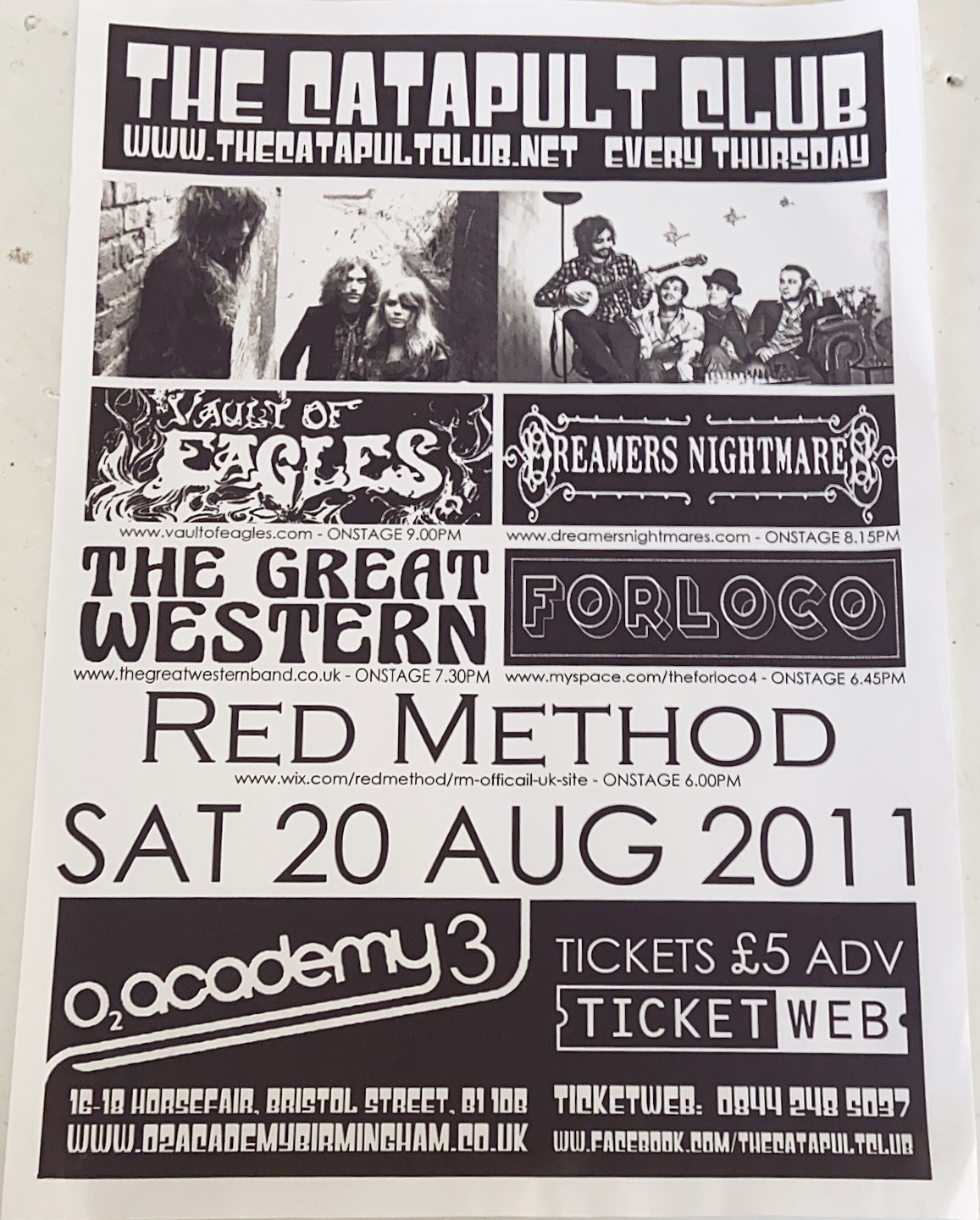 Catapult Club presents Vault of Eagles live in concert at Academy 3 in Birmingham with Dreamers Nightmare, The Great Western, Forloco and Red Method in support on 20th August 2011.