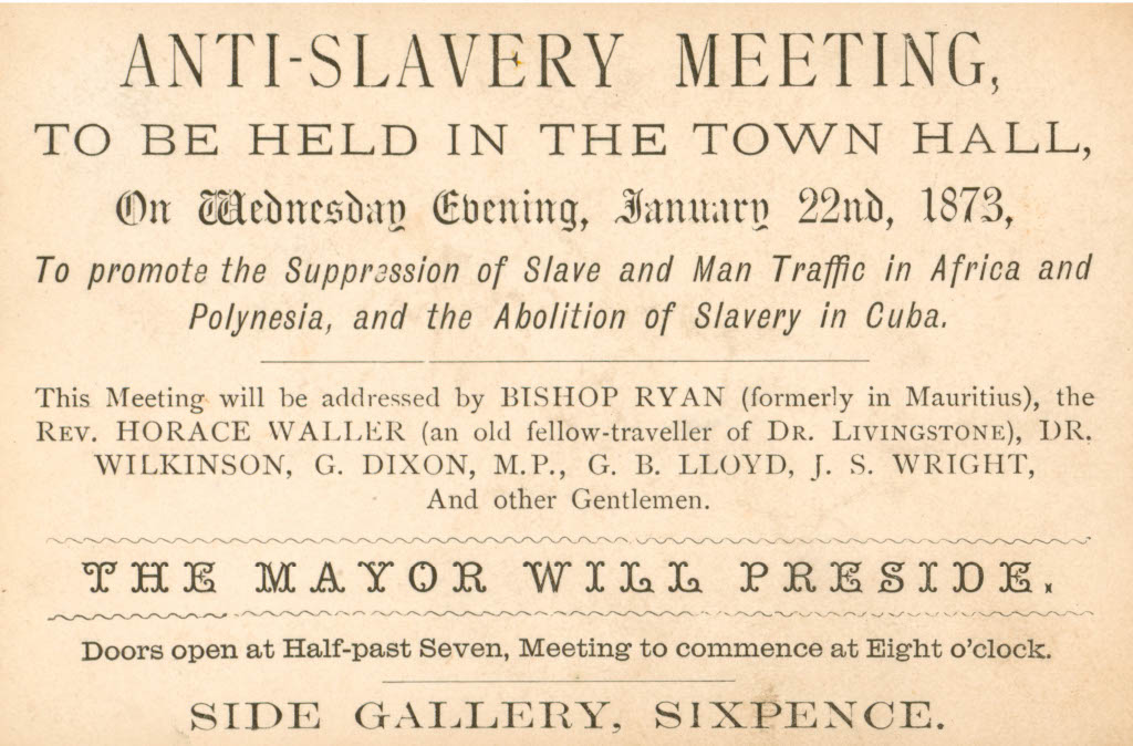 Anti Slavery Cards Advertising a Meeting 22 January 1873